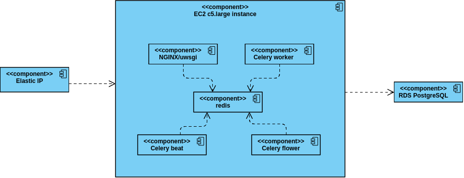 Five services are running in that single EC2 instance: